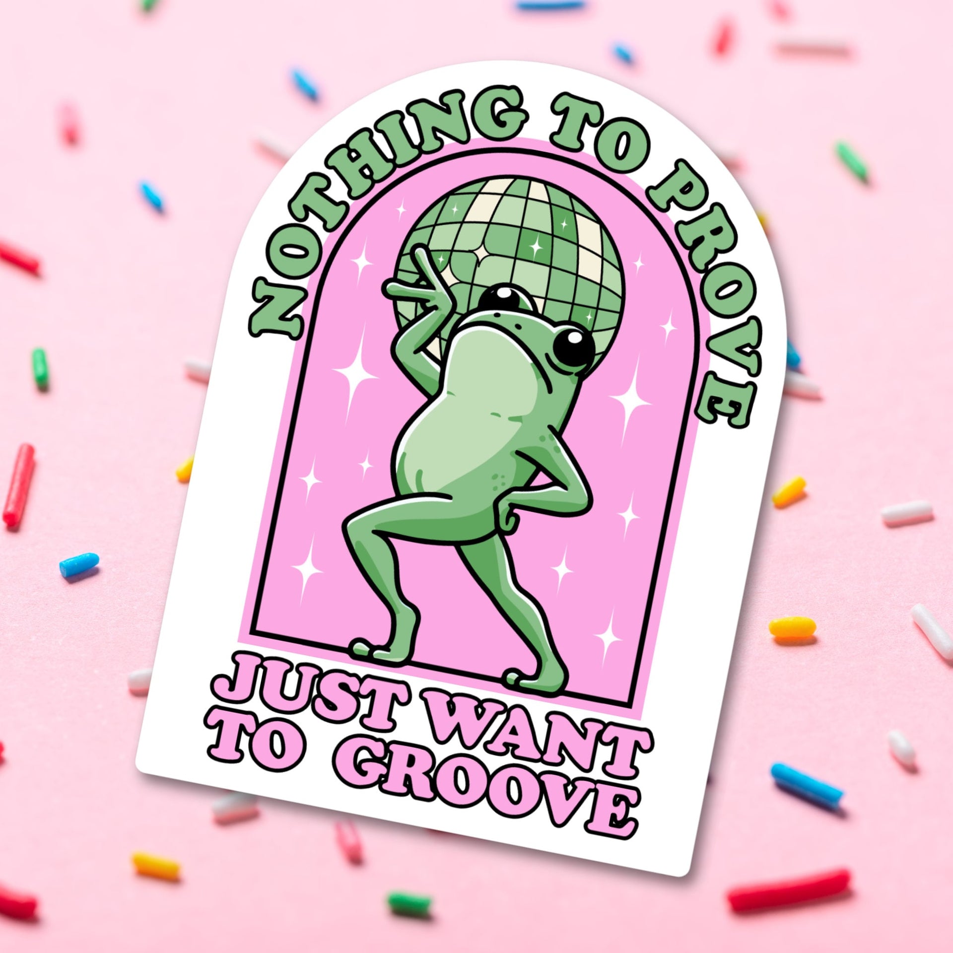 Introducing the "Nothing To Prove, Just Want To Groove" Vinyl Sticker - a groovy and carefree addition to your sticker collection! This 3-inch vinyl sticker features a fun and lighthearted message that embraces the joy of living life on your own terms. With the phrase "Nothing To Prove, Just Want To Groove," this sticker offers a playful reminder to let go of expectations and dance to the beat of your own drum.