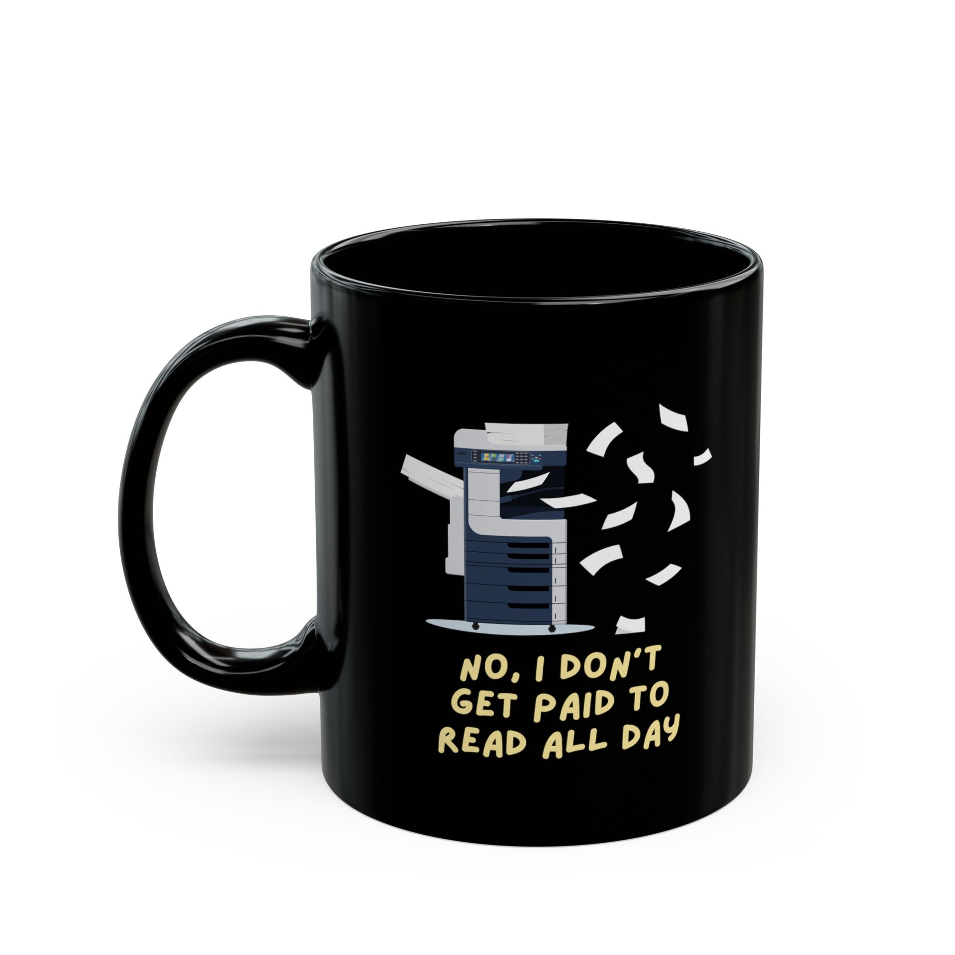 Elevate your coffee break and celebrate the invaluable role of librarians with our "No, I don't get paid to read all day" ceramic mug. Order yours today and let your mug do the talking!
