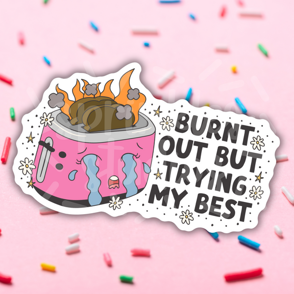 Burnt Out But Trying Vinyl Sticker