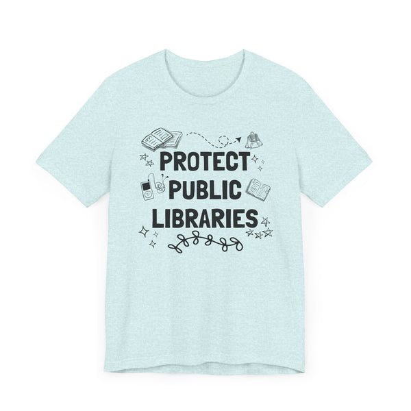 Join the movement to safeguard our public libraries and promote literacy and learning. Get your Bella and Canvas Short Sleeve Tee with the empowering "Protect Public Libraries" print today and make a statement that resonates with bibliophiles and advocates everywhere!